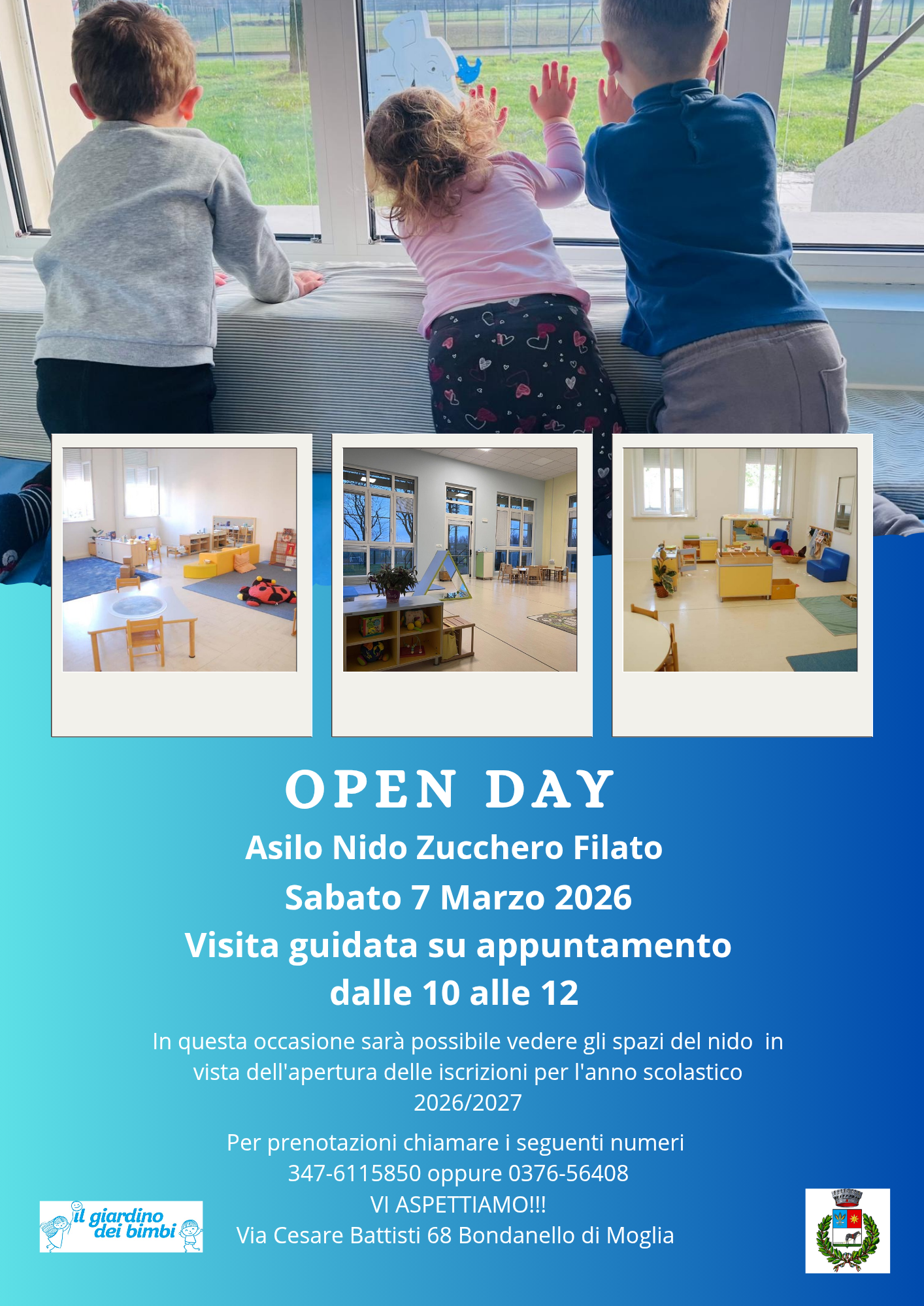 Nel giorni di sabato 7 Marzo, dalle ore 10 alle ore 12, si terrà l'Open Day organizzato dalla Cooperativa "Il Giardino dei Bimbi". Durante l'evento sarà possibile visitare la struttura in vista dell'apertura delle iscrizioni per l'anno scolastico 2026/2027.